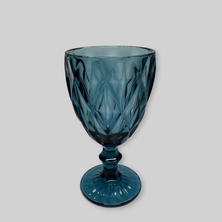 A textured glass, Blue Goblet, ideal for wine will add a touch of flair to any table setting, ready to toast the event.